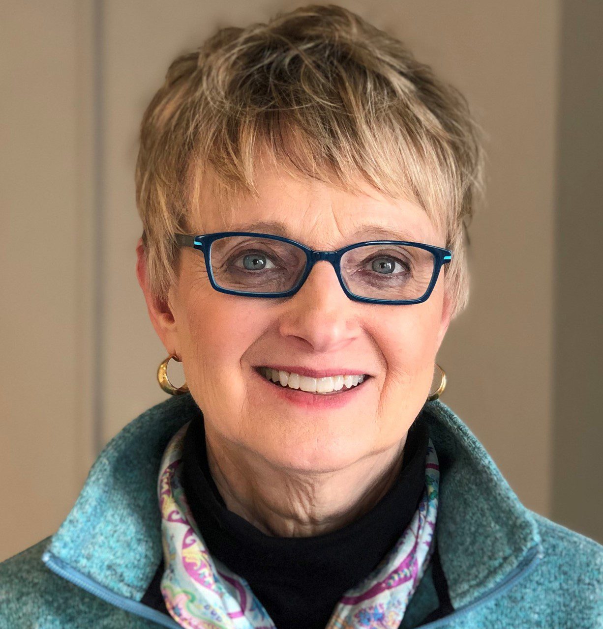 Professor Kelly Weisberg smiles at the camera, wearing blue glasses and a light blue jacket. She is in a well-lit indoor setting.