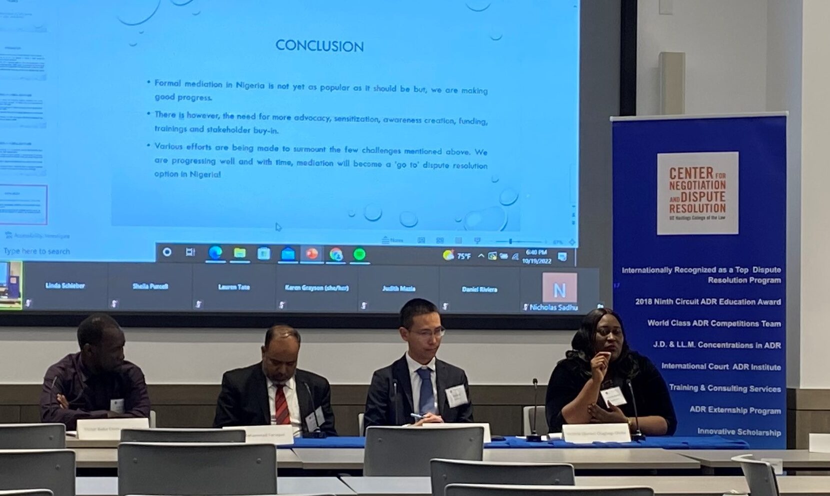 On October 19, 2022, The Mediation Society, The Center for Negotiation and Dispute Resolution (CNDR), and The JAMS Foundation hosted Mediation Developments Around the World: Introducing the 2022 Weinstein JAMS International Fellows at UC Law SF.