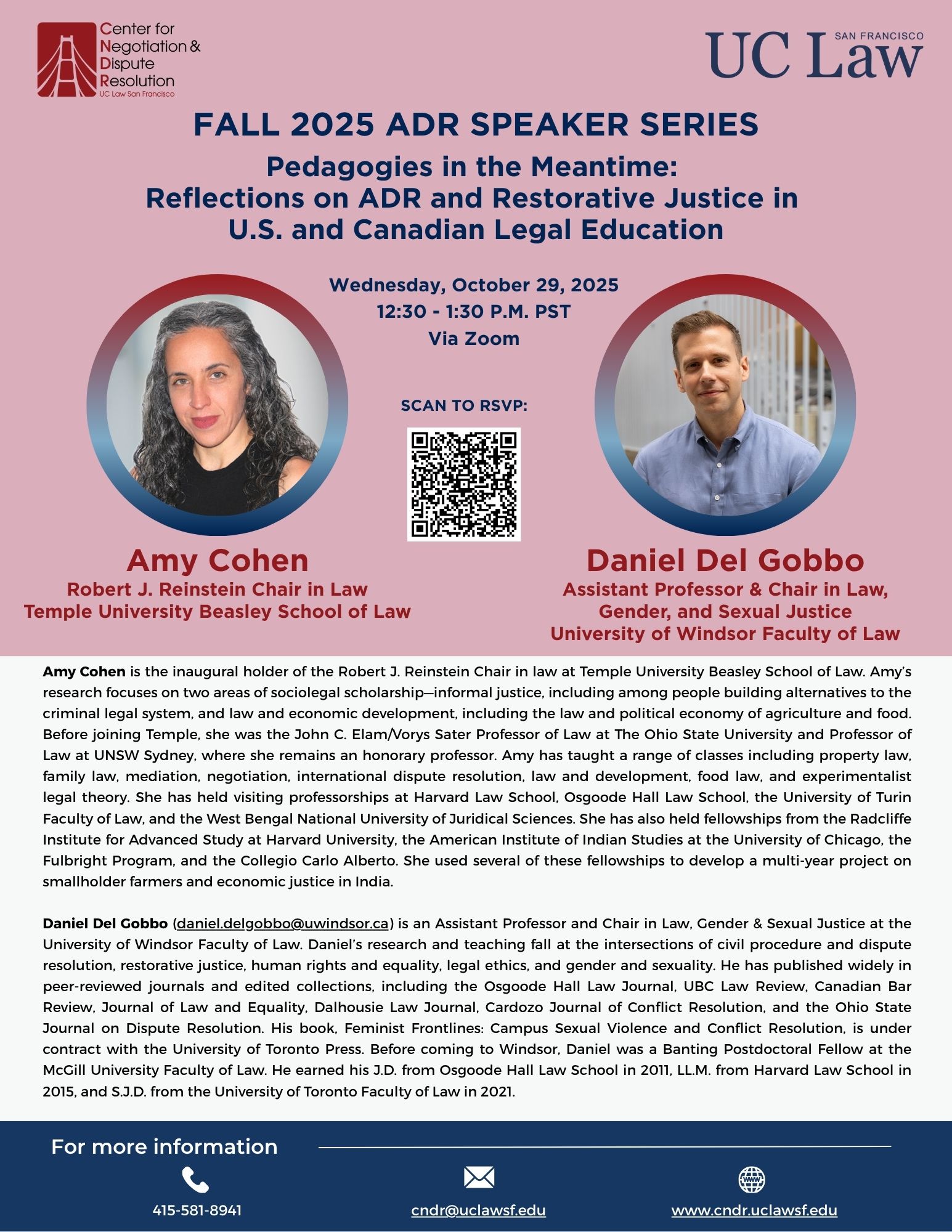ADR Speaker Series – Pedagogies in the Meantime: Reflections on ADR and Restorative Justice in U.S. and Canadian Legal Education