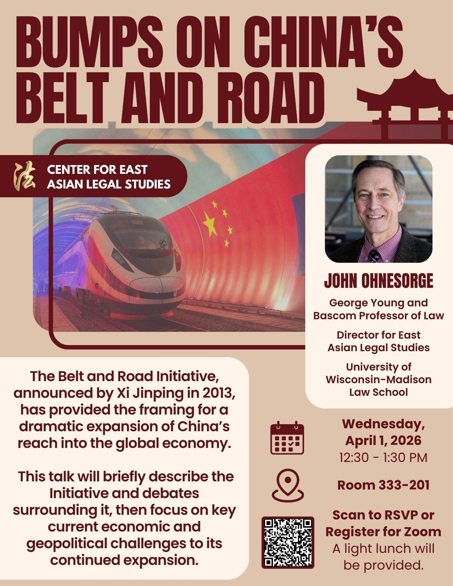 Professor John Ohnesorge is Professor of Law, Director of the East Asian Legal Studies Center, and founder and director of the Compliance Initiative at the University of Wisconsin-Madison Law School. A native of Minneapolis, Professor Ohnesorge received his B.A. from St. Olaf College (English and Psychology, 1985), his J.D. from the University of Minnesota Law School (cum laude, 1989), and his S.J.D. from Harvard Law School (2002). He spent several years in East Asia, as a teacher and law student in Shanghai in the 1980s, as a lawyer in private practice in Seoul in the 1990s, and as a visiting scholar at Seoul National University. He spent 2023 as a Fulbright Distinguished Scholar at Yonsei University in Seoul. His research interests include Administrative Law, Politics and Compliance, Law and Economic Development, East Asian Legal System Development, and International Economic Law.