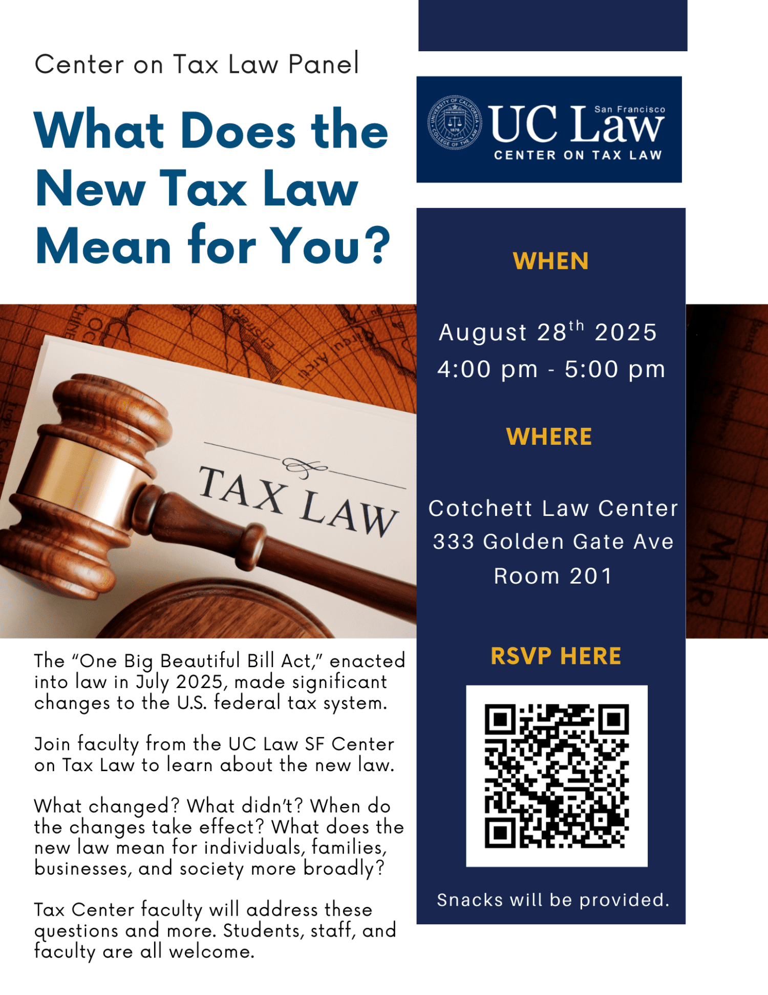 Welcome to the law school’s master calendar! Use the “Event Category” filter below to find events by intended audience. (For example, if you are an alum, click on the Event Category button below and select “Alumni” from the drop-down menu; the calendar will then display events open to alumni). Please note that this is a public-facing calendar that contains all events happening on campus, any details that you wish to remain private to the UC Law SF community should not be included in your event submission. Changes to your event submissions may be directed to: website@uclawsf.edu.