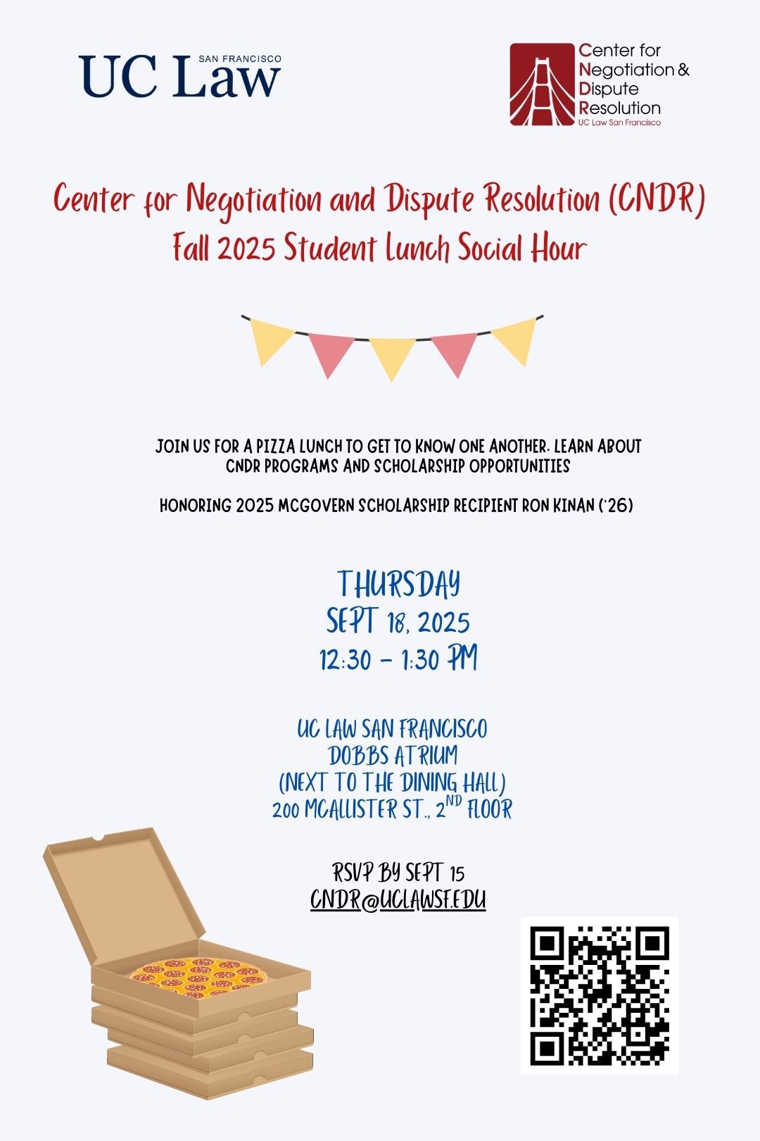 Students: Please join us for a pizza lunch to get to know one another and learn about CNDR programs and scholarship opportunities. We’ll also acknowledge our 2025 McGovern Scholarship recipient, Ron Kinan (’26).