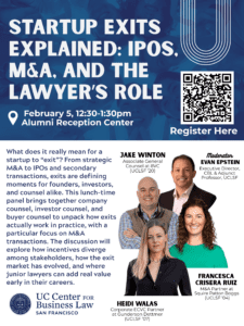 Welcome to the law school’s master calendar! Use the “Event Category” filter below to find events by intended audience. (For example, if you are an alum, click on the Event Category button below and select “Alumni” from the drop-down menu; the calendar will then display events open to alumni). Please note that this is a public-facing calendar that contains all events happening on campus, any details that you wish to remain private to the UC Law SF community should not be included in your event submission. Changes to your event submissions may be directed to: website@uclawsf.edu.
