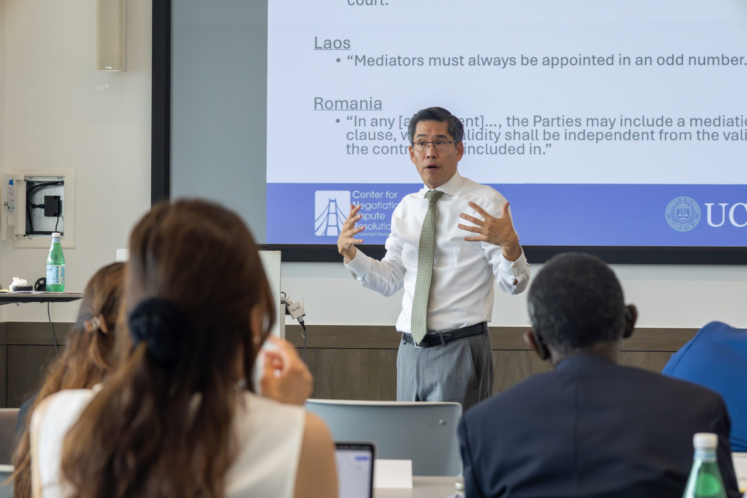CNDR Faculty Director & Professor of Law Hiro N. Aragaki leads a session on the role of law in mediation reform