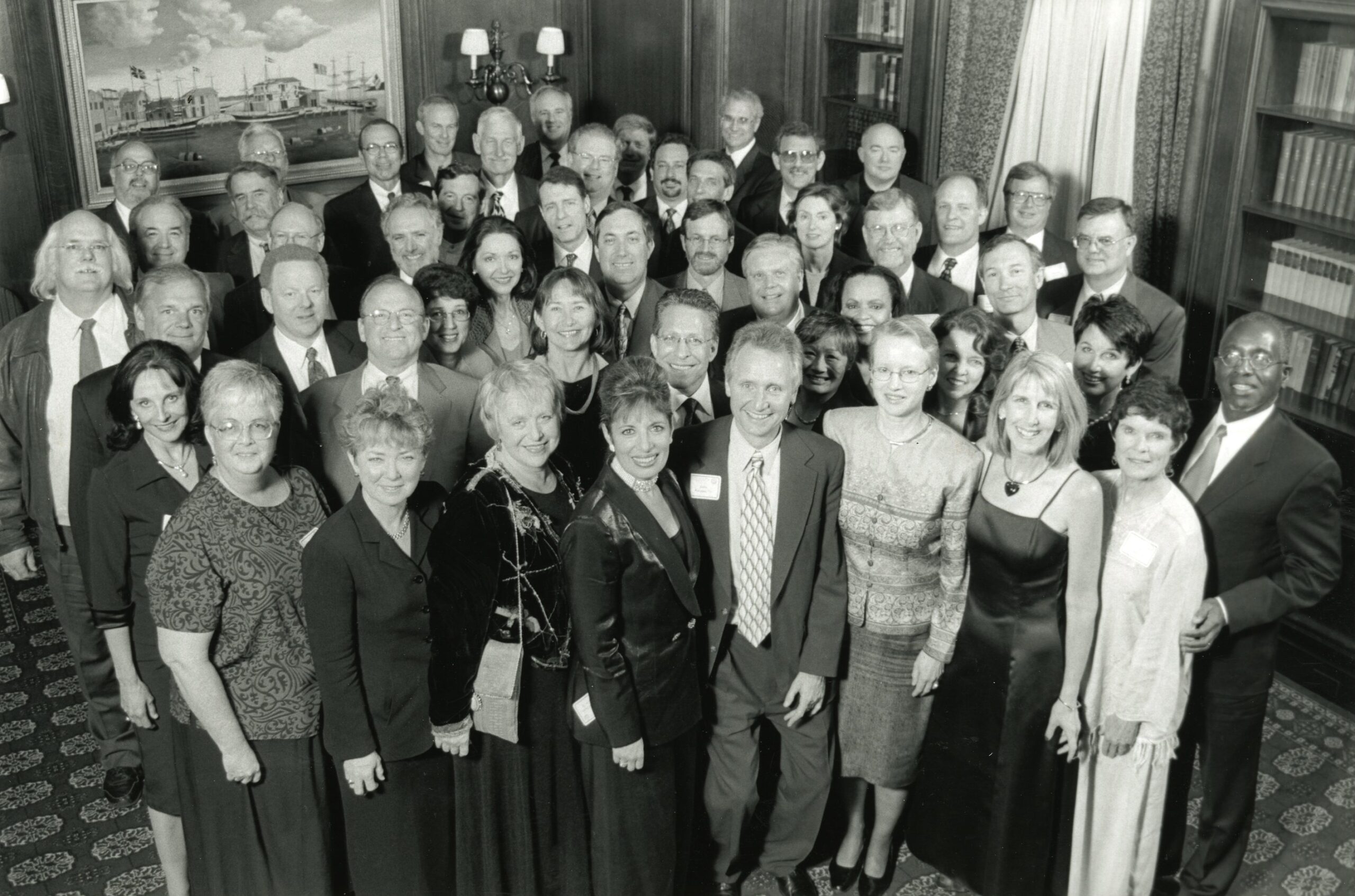 Business formal for All-Alumni Party at City Hall.
